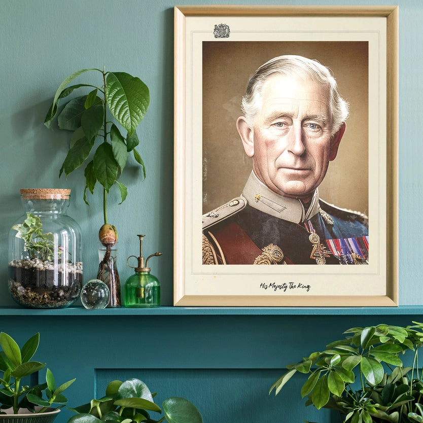 This vintage King Charles III poster is perfect for memorabilia collectors. It features a traditional portrait of the King and is sure to be the envy of anyone who sees it.